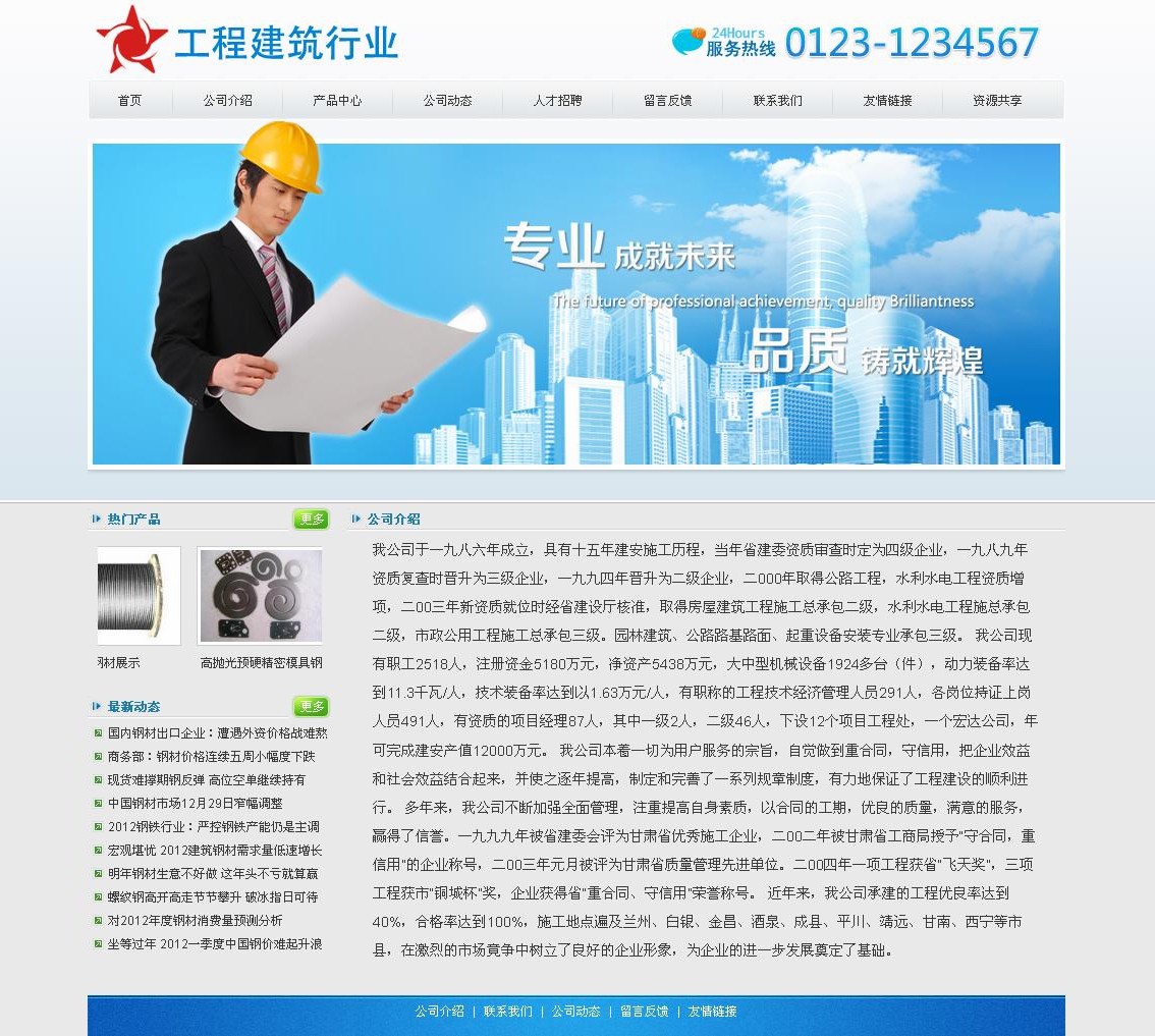 我公司于一九八六年成立,具有十五年建安施工歷程,當(dāng)年省建委資質(zhì)審查時(shí)定為四級企業(yè),一九八九年資質(zhì)復(fù)查時(shí)晉升為三級企業(yè),一九九四年晉升為二級企業(yè), 二000年取得公路工程,水利水電工程資質(zhì)增項(xiàng),二00三年新資質(zhì)就位時(shí)經(jīng)省建設(shè)廳核準(zhǔn),取得房屋建筑工程施工總承包二級,水利水電工程施總承包二級,市 政公用工程施工總承包三級。園林建筑、公路路基路面、起重設(shè)備安裝專業(yè)承包三級。 我公司現(xiàn)有職工2518人,注冊資金5180萬元,凈資產(chǎn)5438萬元,大中型機(jī)械設(shè)備1924多臺(件),動力裝備率達(dá)到11.3千瓦/人,技術(shù)裝備率 達(dá)到以1.63萬元/人,有職稱的工程技術(shù)經(jīng)濟(jì)管理人員291人,各崗位持證上崗人員491人,有資質(zhì)的項(xiàng)目經(jīng)理87人,其中一級2人,二級46人,下設(shè) 12個(gè)項(xiàng)目工程處,一個(gè)宏達(dá)公司,年可完成建安產(chǎn)值12000萬元。 我公司本著一切為用戶服務(wù)的宗旨,自覺做到重合同,守信用,把企業(yè)效益和社會效益結(jié)合起來,并使之逐年提高,制定和完善了一系列規(guī)章制度,有力地保證了工 程建設(shè)的順利進(jìn)行。 多年來,我公司不斷加強(qiáng)全面管理,注重提高自身素質(zhì),以合同的工期,優(yōu)良的質(zhì)量,滿意的服務(wù),贏得了信譽(yù)。一九九九年被省建委會評為甘肅省優(yōu)秀施工企業(yè), 二00二年被甘肅省工商局授予“守合同,重信用”的企業(yè)稱號,二00三年元月被評為甘肅省質(zhì)量管理先進(jìn)單位。二00四年一項(xiàng)工程獲省“飛天獎”,三項(xiàng)工程 獲市“銅城杯”獎,企業(yè)獲得省“重合同、守信用”榮譽(yù)稱號。 近年來,我公司承建的工程優(yōu)良率達(dá)到40%,合格率達(dá)到100%,施工地點(diǎn)遍及蘭州、白銀、金昌、酒泉、成縣、平川、靖遠(yuǎn)、甘南、西寧等市縣,在激烈的市 場竟?fàn)幹袠淞⒘肆己玫钠髽I(yè)形象,為企業(yè)的進(jìn)一步發(fā)展奠定了基礎(chǔ)。